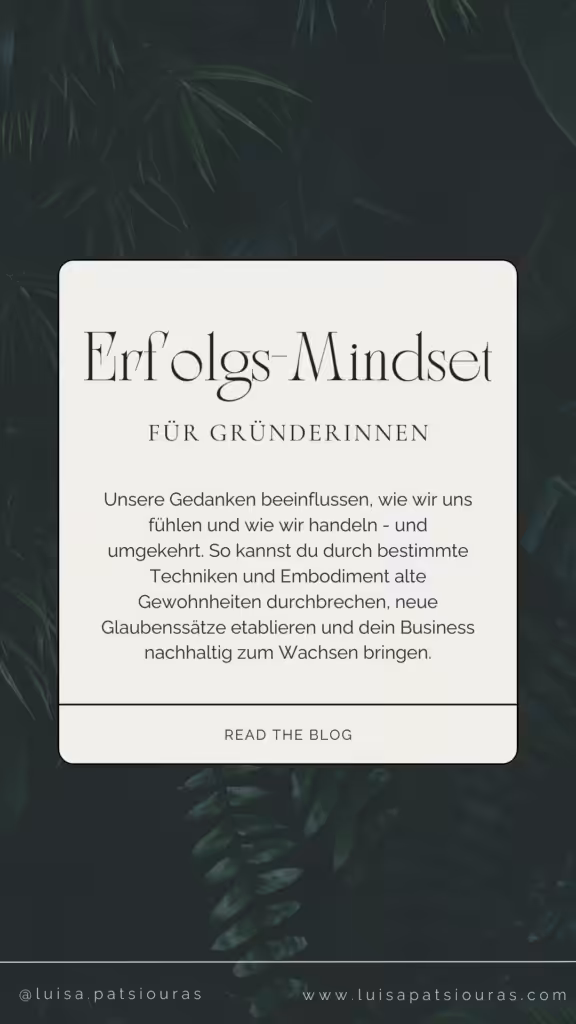 Dein Mindset entscheidet, ob du den Kurs hältst – oder beim ersten Widerstand einknickst. Erfolgreiche Gründerinnen investieren nicht nur in Strategie, sondern auch in ihre innere Haltung. Sie lernen, Rückschläge einzuordnen, Blockaden zu lösen und immer wieder in ihre Kraft zurückzukehren.